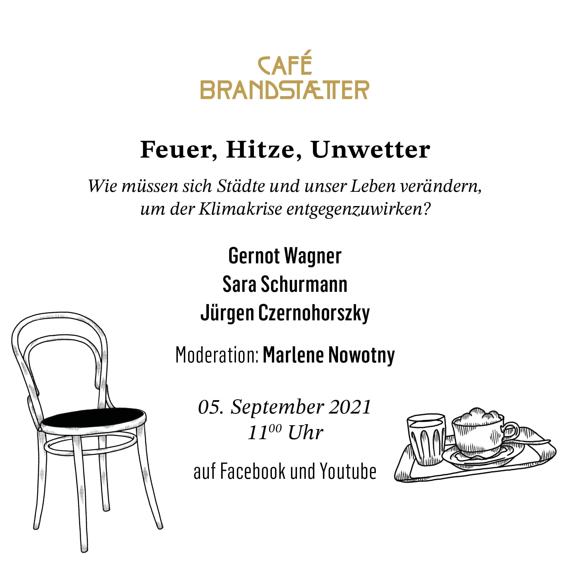 Stadt, Land, Klima - Feuer, Hitze, Unwetter. Das Klima verändert sich bereits. Wie ist es möglich, dem entgegenzuwirken? Inwiefern muss sich unser Lebensstil ändern, um langfristig etwas zu bewirken? Darüber sprechen der Klimaökonom Gernot Wagner, die Journalistin Sara Schurmann und Jürgen Czernohorszky, Amtsführender Stadtrat für Klima und Umwelt in Wien im Café Brandstätter, moderiert von Marlene Nowotny.