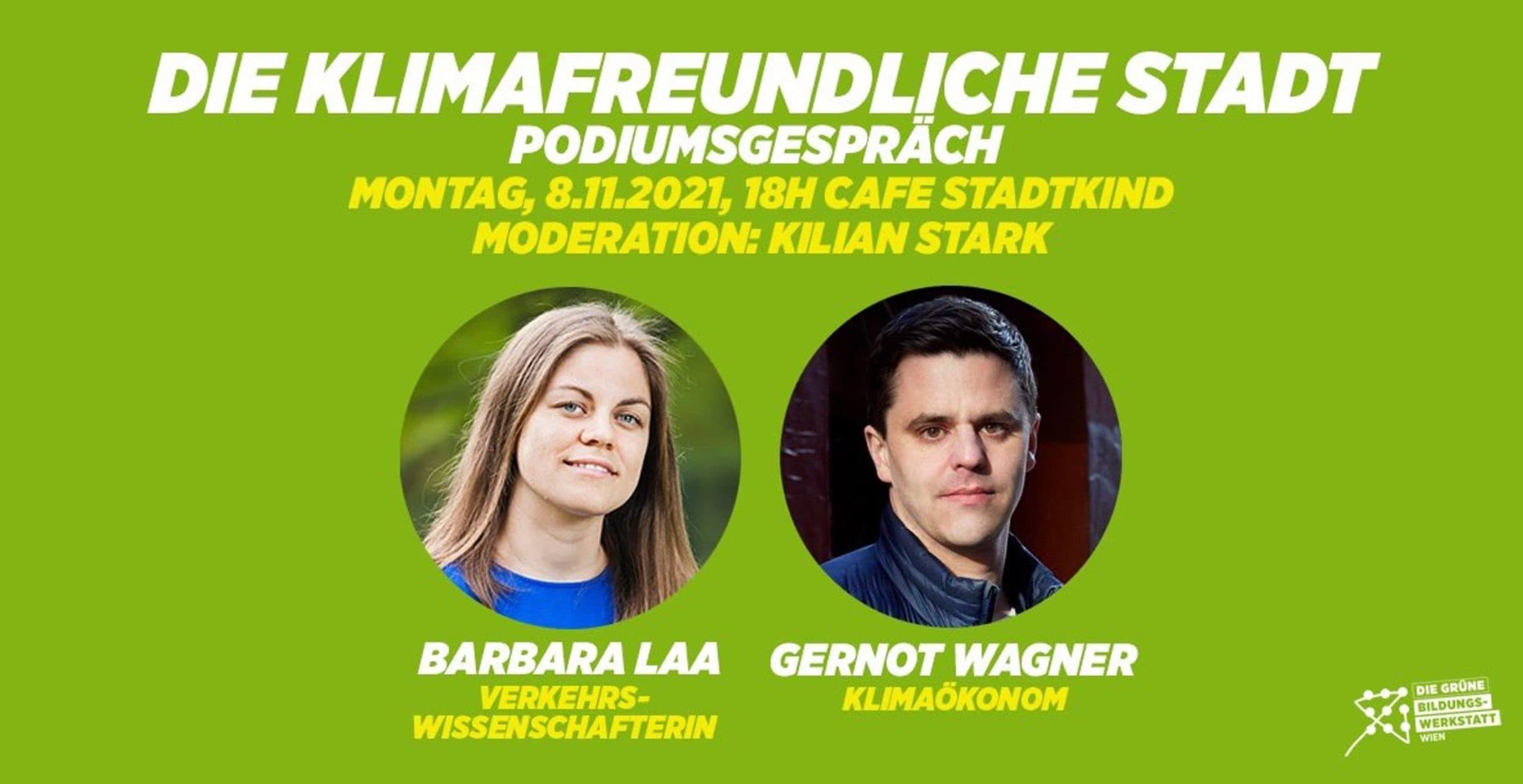 Podiumsdiskussion mit Barbara Laa, Verkehrswissenschafterin, TU Wien, und Gernot Wagner, Klimaökonom, New York University