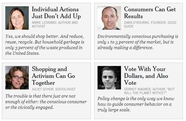 My take on today's New York Times "Room for Debate" debate with Annie Leonard, Dara O'Rourke, Juliet Schor, and Zem Joaquin:
