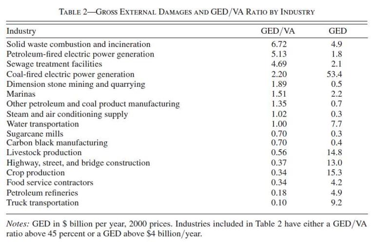 Burning oil or coal causes more in external damages than it adds value to GDP